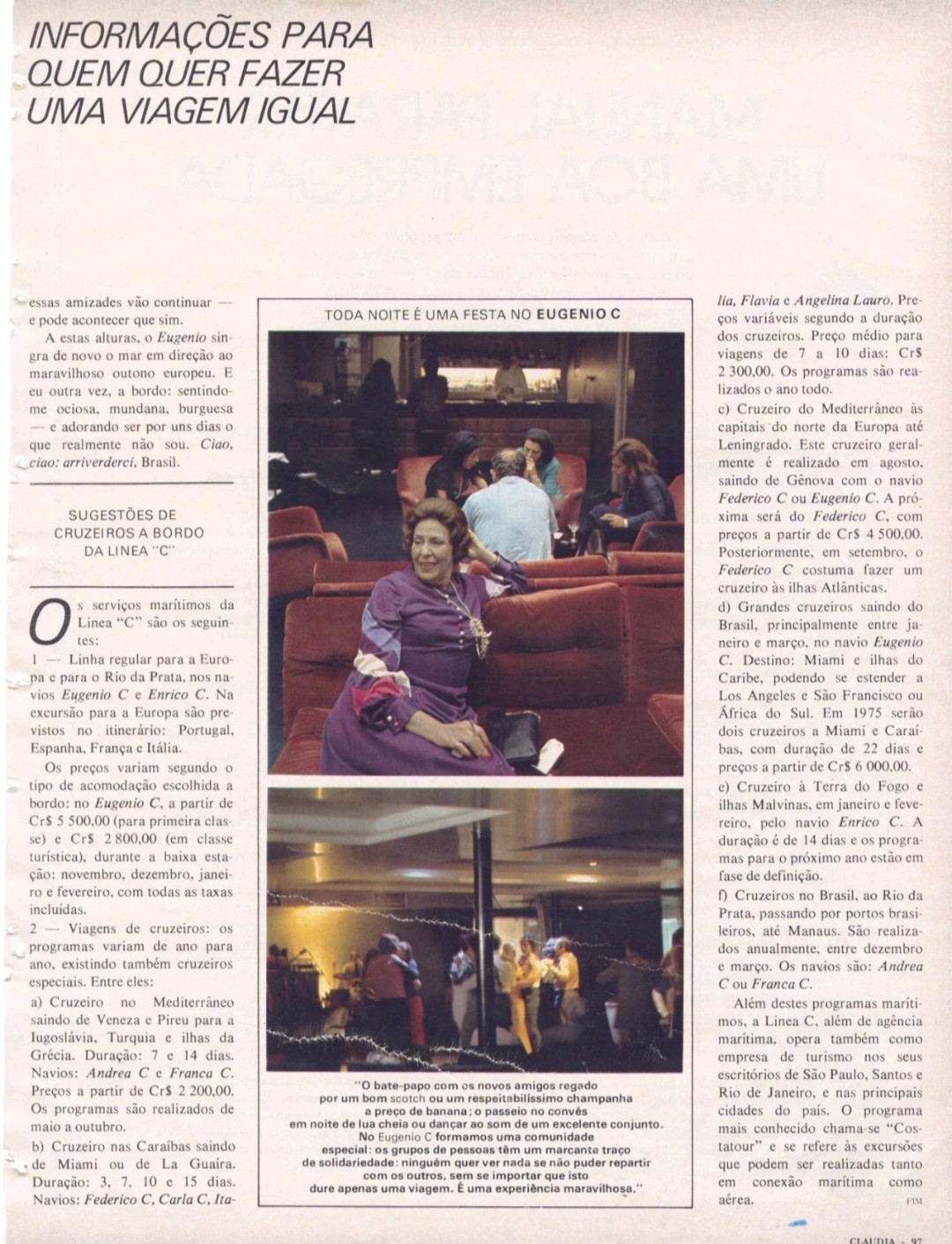 8 de novembro de 2024 COMPARTILHE A necessidade de uma viagem repousante, por Carmen da Silva Confira, a seguir, o texto "A necessidade de uma viagem repousante" publicado originalmente por Carmen da Silva, na revista Claudia nº 156, em setembro de 1974. PreviousNext1234567